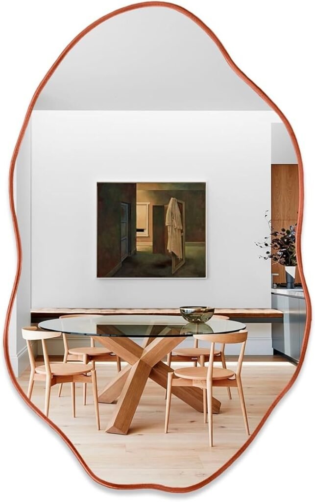 Espelhos com design orgânico evitam linhas retas e ângulos fechados, apostando em bordas arredondadas e formatos únicos. Isso proporciona não apenas beleza, mas também uma sensação de movimento e fluidez no ambiente.